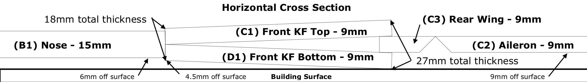 step. 1.5mm of this step should be on each side of the wing so that the center line of the nose (B1) matches the