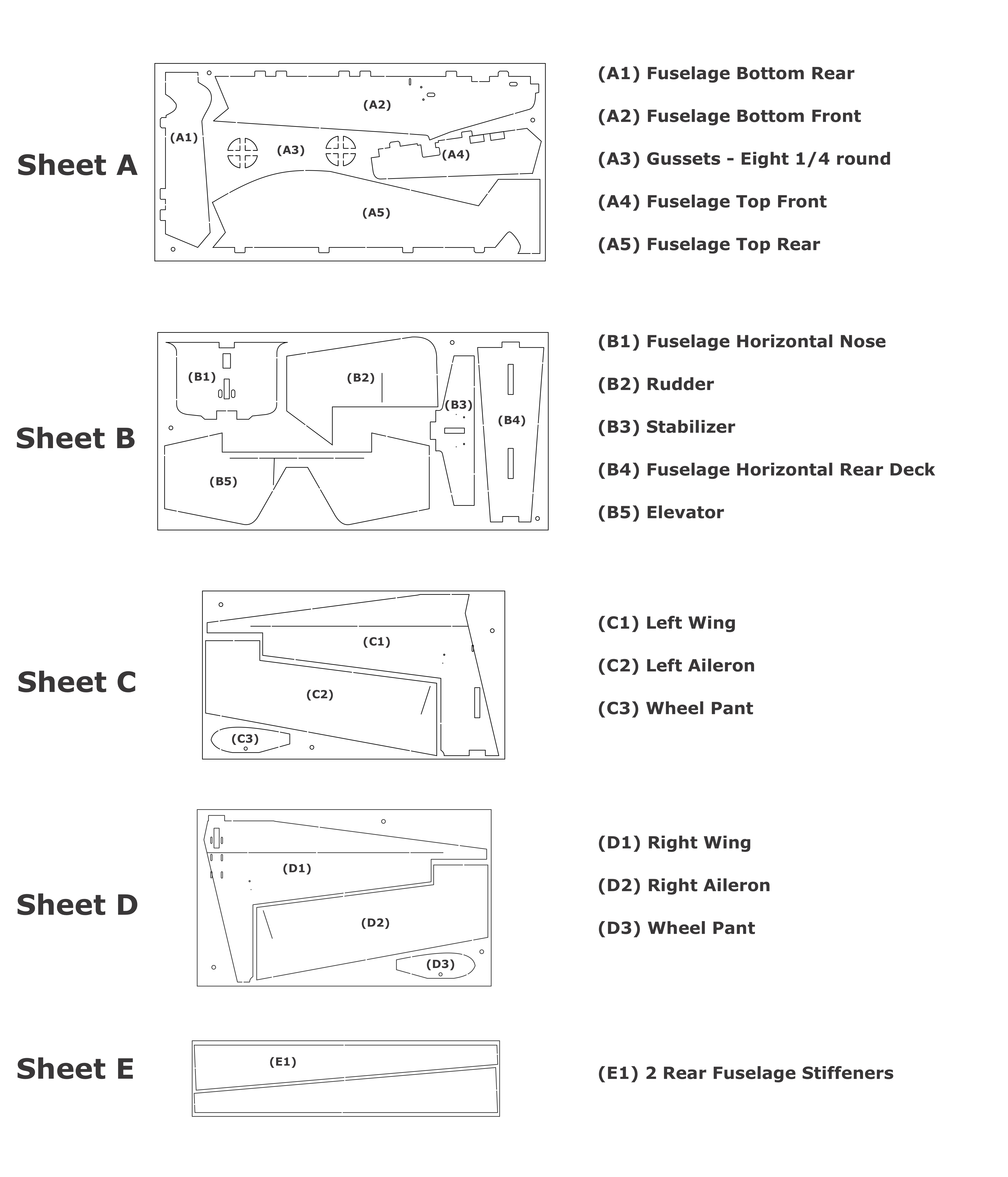 holes. The large end of the fuselage stiffeners (E1) should face the front/wing end. Dry fit the fuselage