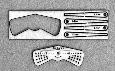 Take the straight nylon servo arm and position/align it into the plywood aileron servo bellcrank (bowtie