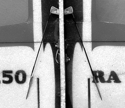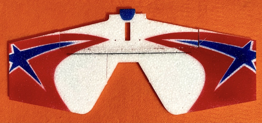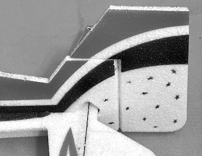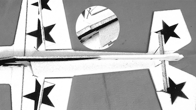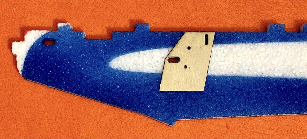 Glue the control horns into the slots in the surfaces. Notice that the elevator horn is different and has a flat