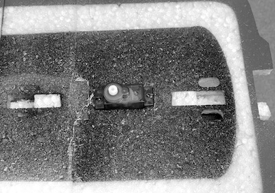 towards the tail of the plane and on the same size as the control surface horn. The rudder servo mount closest