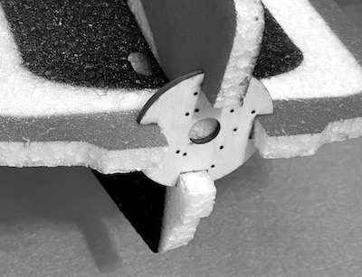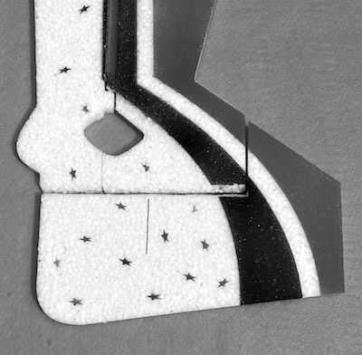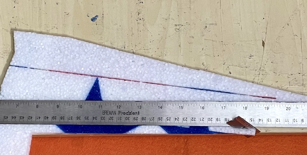 the pivot and line up with the extended hingeline. Be careful not to get any glue on the plywood/rod/foam