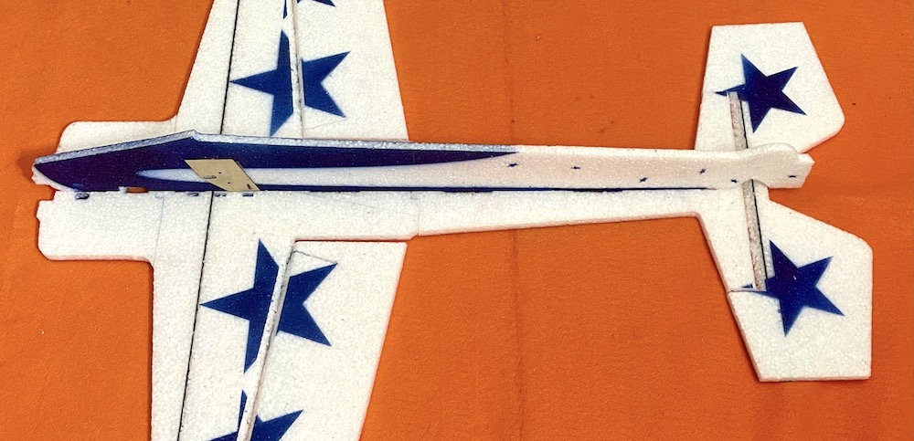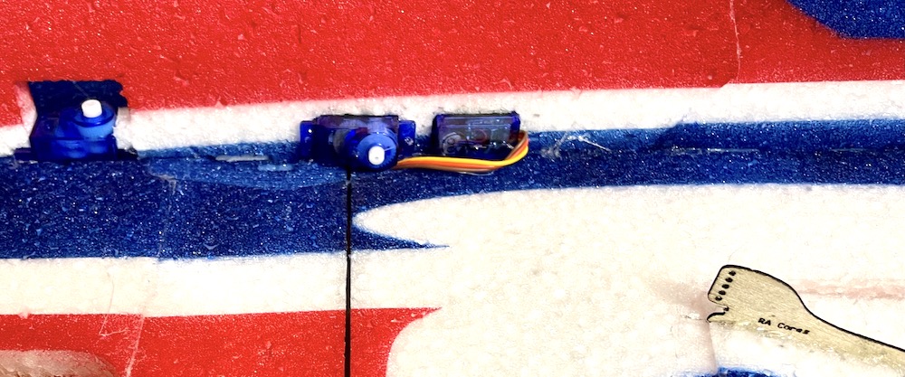 With the glue dry, remove the toothpicks and turn over the airframe. Insert the 9g servo into the aileron