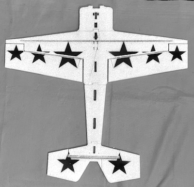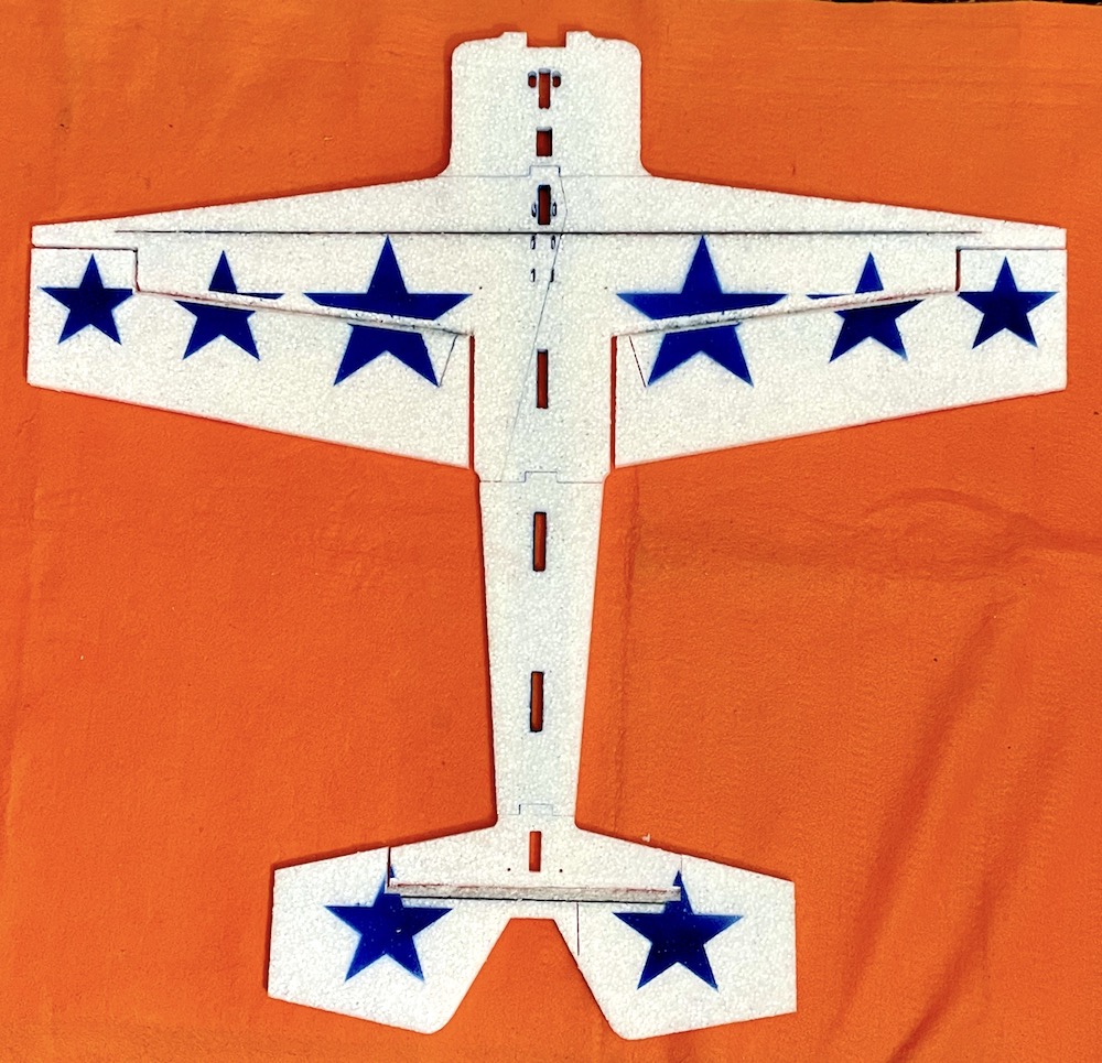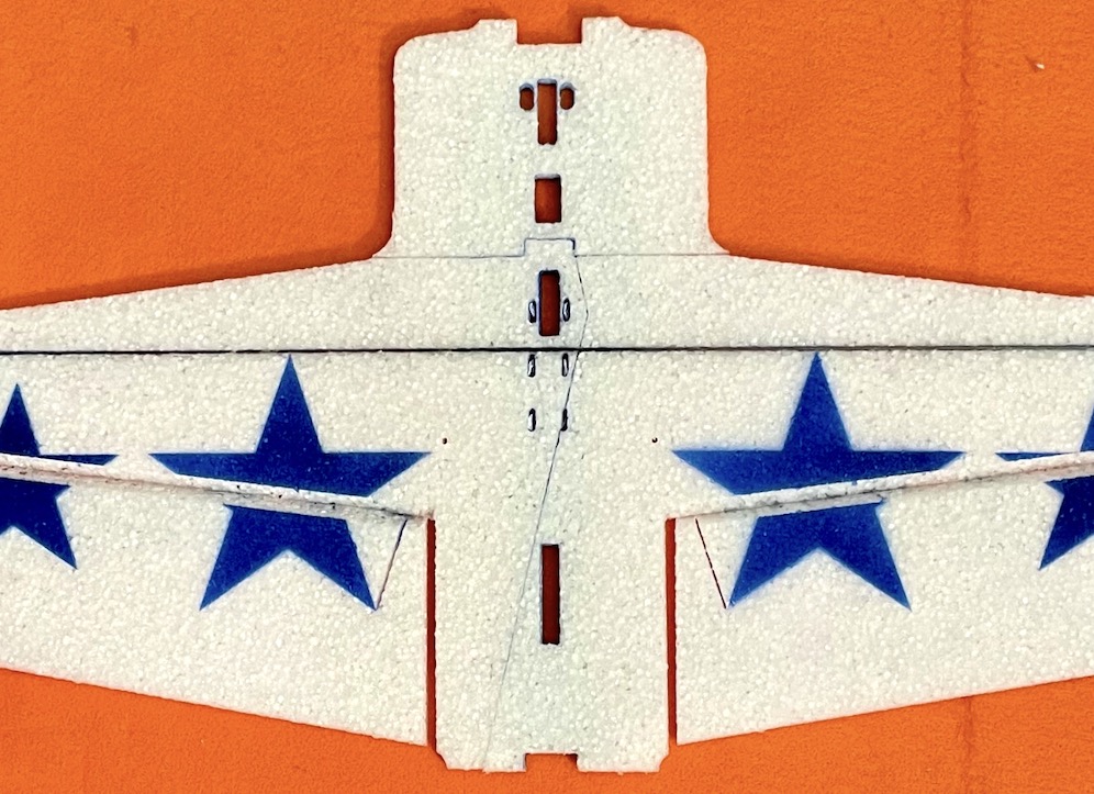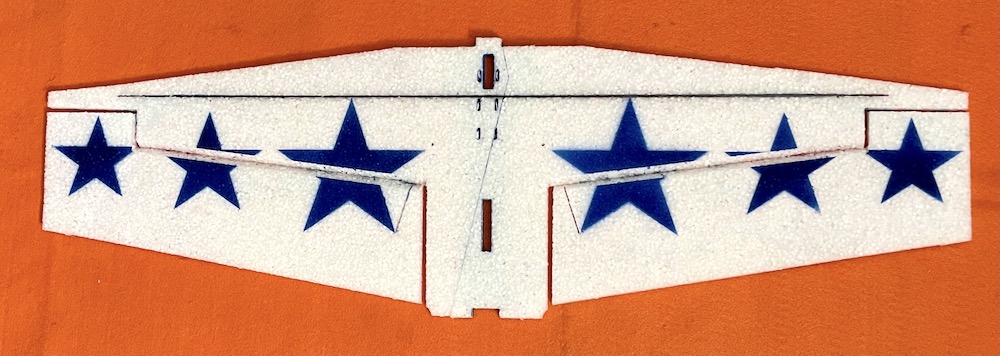 wing assembly top side down on a flat surface large enough for the entire plane outline and spread Foam-Tac