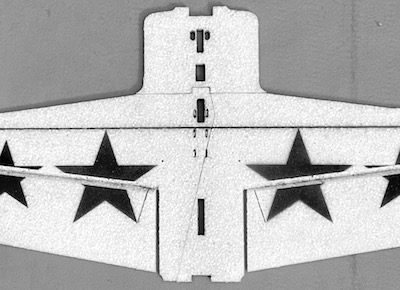 Foam-Tac on the joint at the root of the wings, glue the two wing halves together at the center. Place the