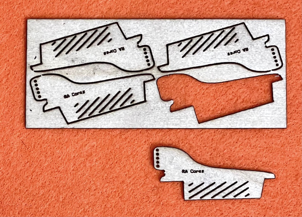 Find the quarter round gusset pieces (A3) and glue them in place as shown behind the firewall. This is