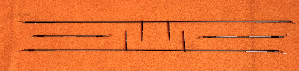 Find the aileron bellcrank assembled previously and take the two short aileron pushrods and hook one Z-bend end