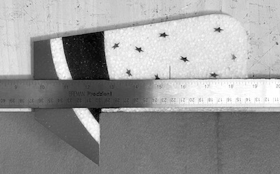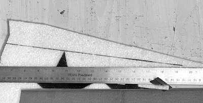 surface and place your ruler back from the edge (use a scrap of foam for the proper spacing) and cut the bevel