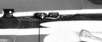 extended hingeline. Take the scraps of the aileron pushrods and glue the small plastic dots to one end