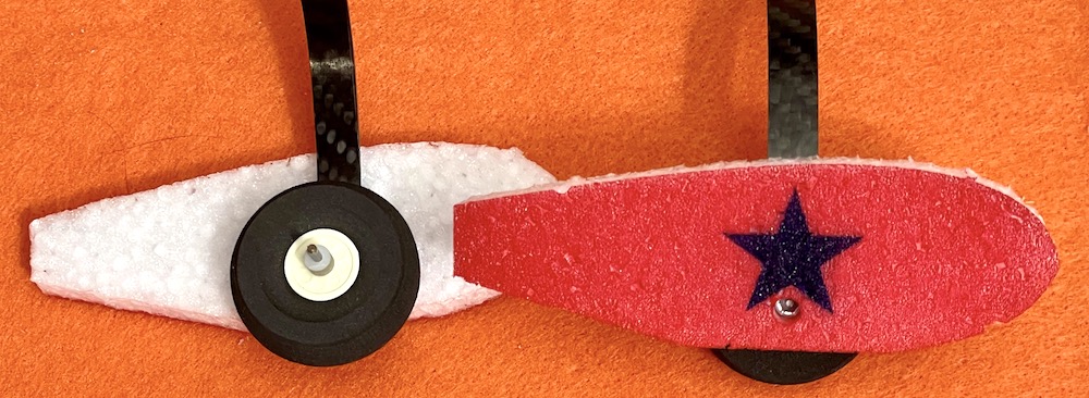 Glue the flat carbon strip provided to the front edge of the fake tailwheel.